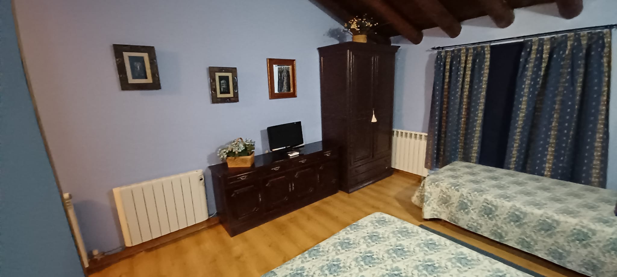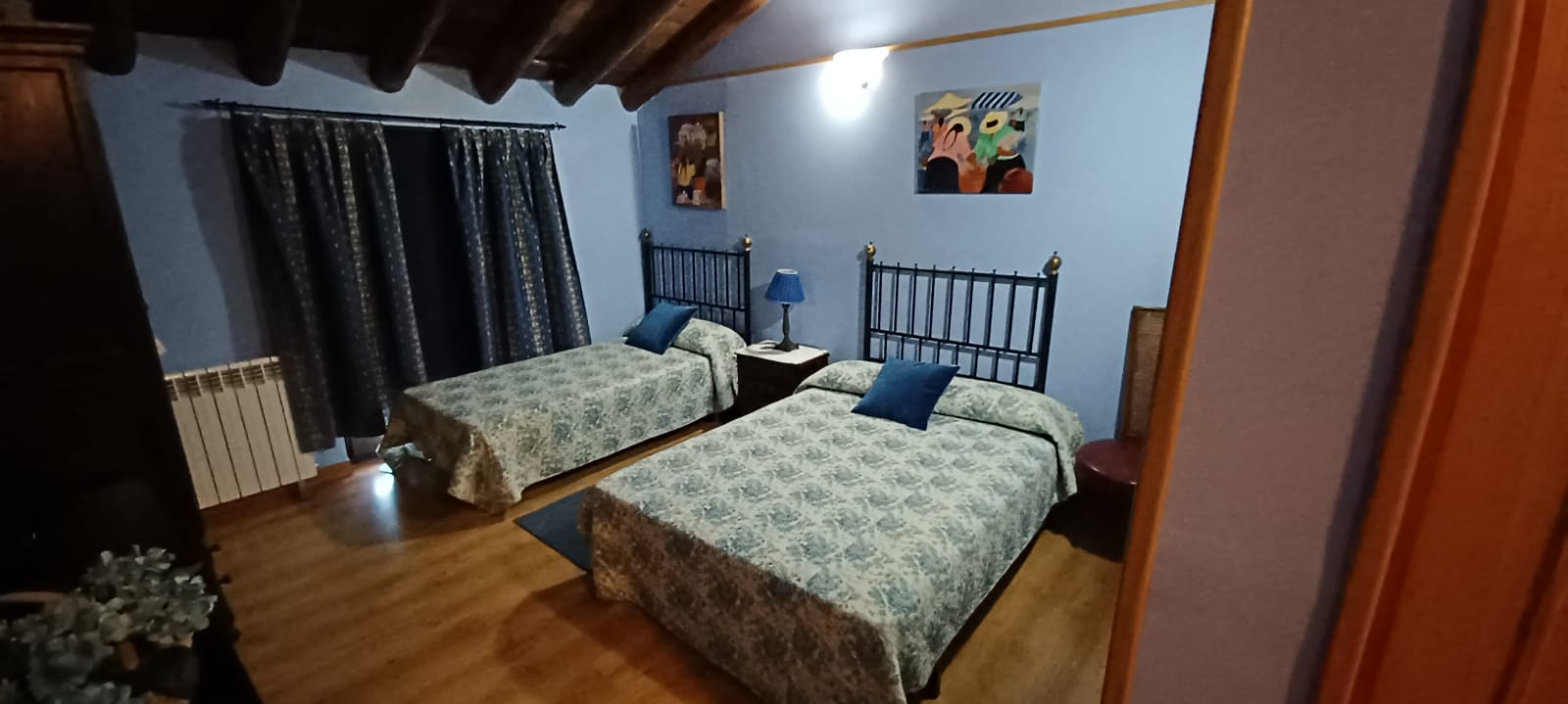 Pensada para familias o grupos pequeños, esta habitación triple combina espacio y calidez en un entorno tranquilo. Incluye baño privado, tres camas, calefacción y decoración tradicional, todo dentro de un ambiente rural histórico en Villarroya de la Sierra. Precio por noche: 90 €.